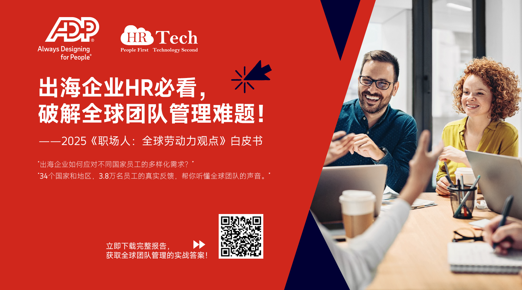 最新发布的ADP 2025《职场人:全球劳动力观点》白皮书,正是用34个国家和地区3.8万员工的真实反馈,帮你听懂全球团队的声音。