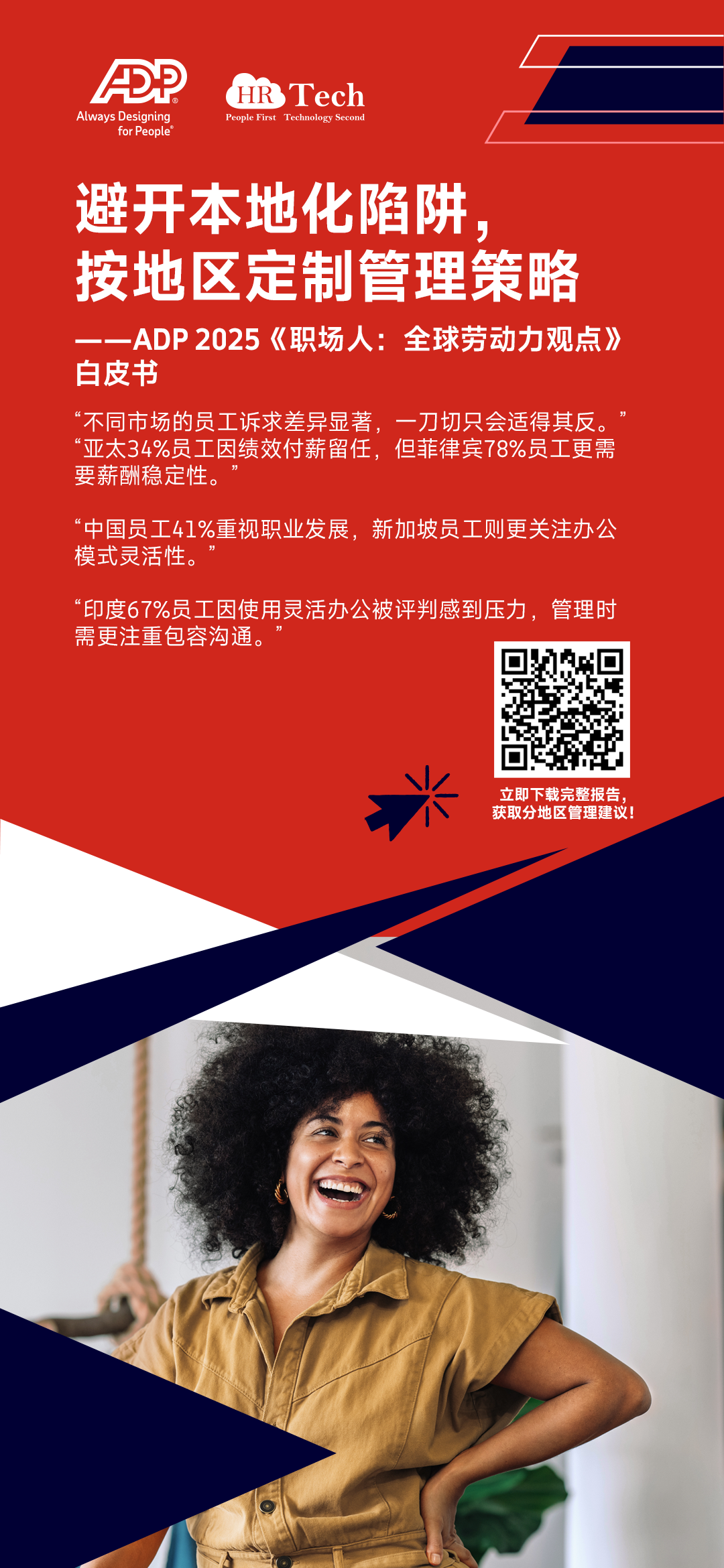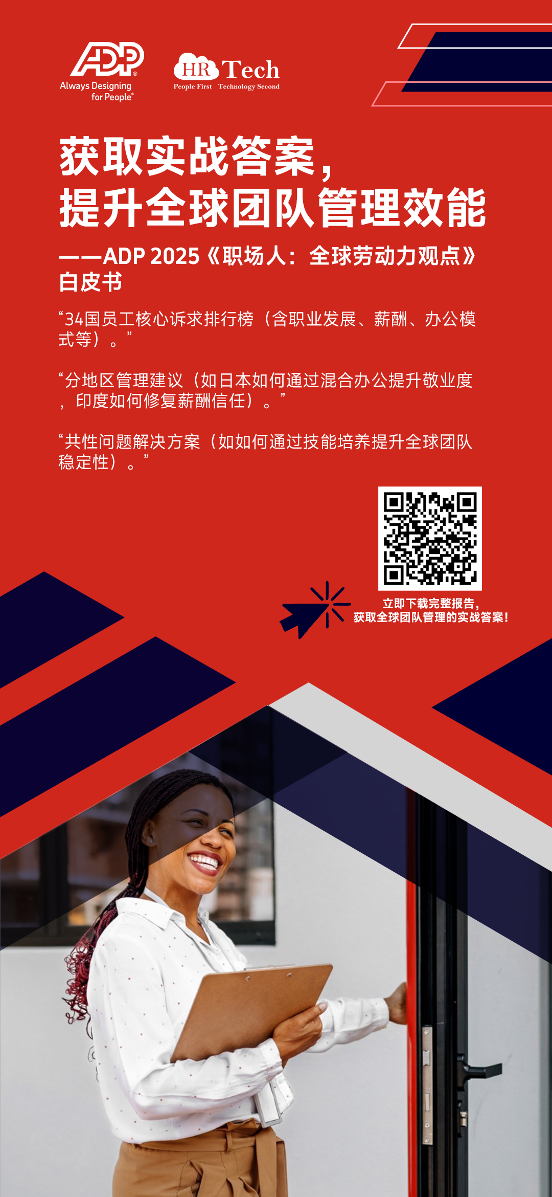 立即下载ADP 2025《职场人:全球劳动力观点》白皮书,用全球员工的真实反馈替代经验判断,让管理决策精准触达各地团队的诉求点——毕竟,听懂员工,才能真正留住人、管好队、赢市场。