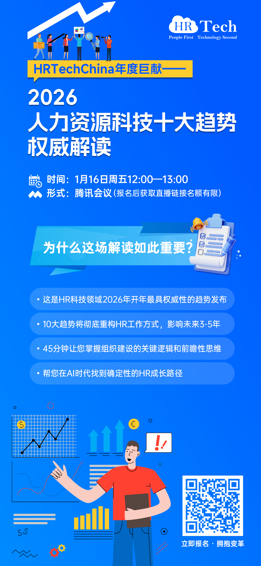 因HR小伙伴的热烈反馈,HRTech重磅加场:2026年1月16日周五中午12:00,我们再次邀请HRTech首席顾问为您进行2026年人力资源科技十大趋势的权威解读