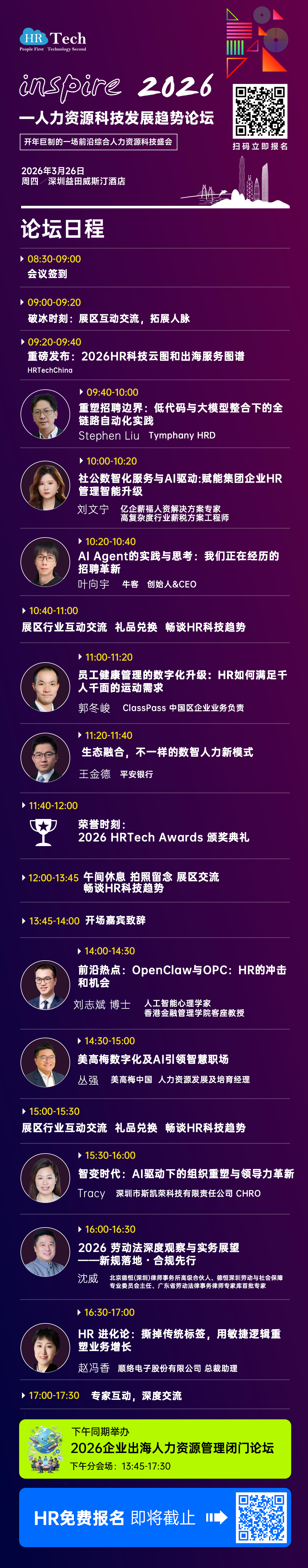 Inspire2026人力资源科技发展趋势论坛·深圳 签到时间:3月26日周四 上午8:30分开始签到