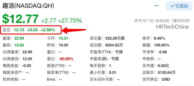 2020年7月10日周五美西时间,2012年成立的劳动力运营解决方案平台「趣活」正式以“QH”为代码在纳斯达克挂牌上市。
