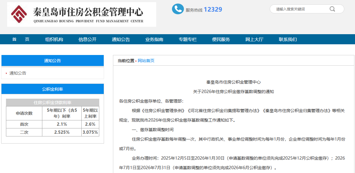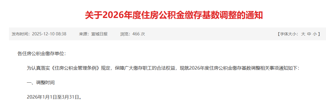 2025年12月5日至2026年1月30日(申请基数调整的单位须先完成2025年12月公积金缴存);
