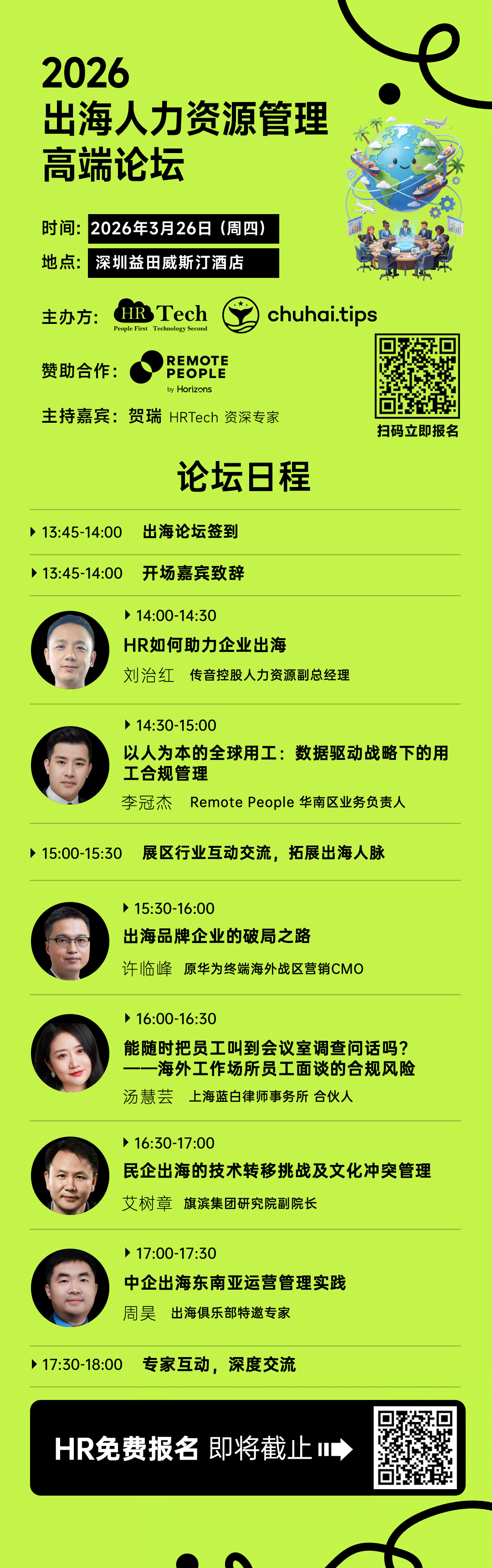 费用:出海企业HR及高管免费参加,但需审核且通过