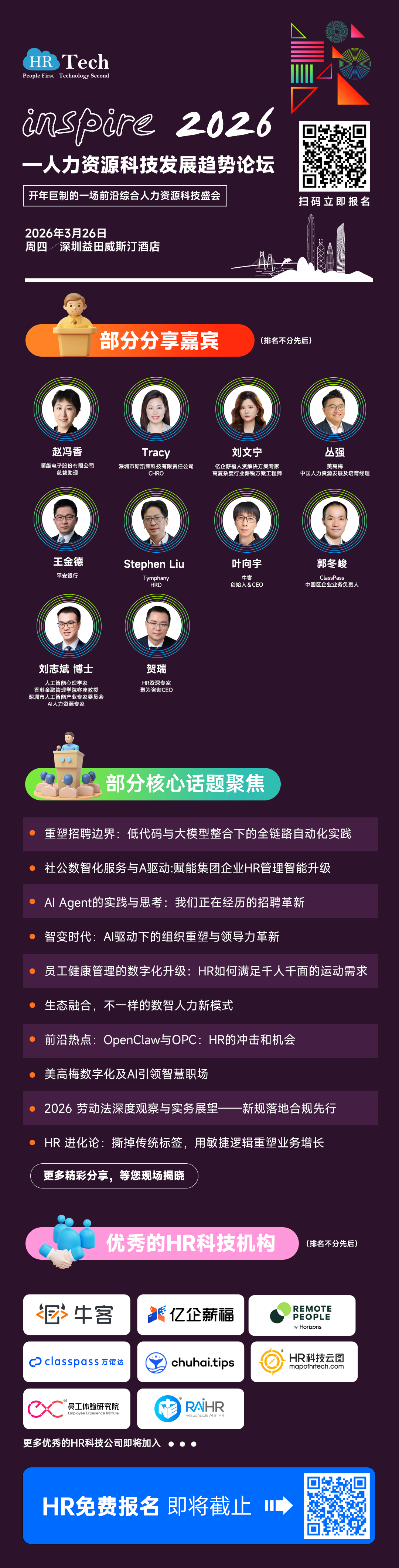Inspire2026人力资源科技发展趋势论坛·深圳 签到时间:3月26日周四 上午8:30分开始签到