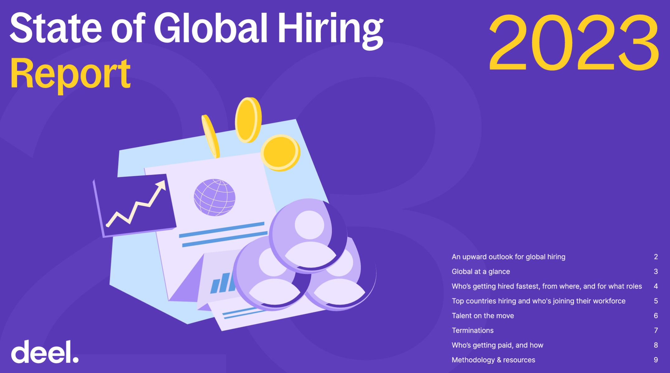Deel 的《2023年全球招聘报告》已经发布,涵盖整个 2023 年和 160 个国家的数十万份全球员工合同。三个特别有趣的洞察 :