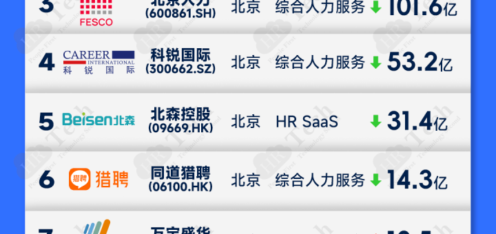 【榜单】深度解读3月中国大陆地区人力资源上市公司TOP10榜单:市值缩水,但行业未崩,中国HR资本逻辑转向