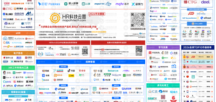 HR科技云图(mapofhrtech.com)企业HR采购最佳指南,一图尽览人力资源科技概况 (高清版本下载可以通过 mapofhrtech.com 获取高清大图 或者复制链接到浏览器打开:https://www.mapofhrtech.com/Index/download/ ) 您也可以在HRTechchina公众号回复“云图”进行获取! 以专业之笔,绘就 HR 数字化采购的新指南 进入 2026 年,人力资源数字化已不再是“是否要做”的问题,而是全面迈入“如何做出高质量数字化决策”的深水区。企业 HR 面临的核心挑战,正从系统堆叠、功能覆盖,转向长期可持续的技术选型、稳定交付能力与风险可控性。 在这一背景下,全新升级的 《2026 HR科技云图(MapofHRTech.com)》 正式发布。这一次,我们并非简单更新一张行业图谱,而是以更高标准重塑了一套面向企业 HR 决策者的权威数字化采购参考体系。 严选而非罗列:为 HR 决策“去噪音” 真正的权威,源于克制。 在本次升级中,我们对既有行业版图进行了系统性重构,主动剔除了已淡出主流视野、技术路径滞后或长期缺乏市场验证的机构与产品,仅保留具备持续交付能力、技术成熟度与行业口碑的优选方案。 这种对 HR 科技生态的“脱水处理”,旨在帮助企业 HR: 减少无效评估成本 避免被短期概念与营销噪音干扰 将有限的采购精力,聚焦在真正具备长期合作价值的厂商之上 云图上的每一个坐标,均代表经过市场与实践双重检验的选择。 融合资本市场视角,建立长期合作判断基准 《2026 HR科技云图》首次系统性引入资本市场维度的分析视角。 通过同步发布全球及中国人力资源上市公司市值榜单,将企业的财务稳健度、市场认可度与行业位置,纳入 HR 科技采购的重要参考指标,帮助企业从更长期的视角评估: 厂商的可持续经营能力 产品路线的稳定性 长期服务与生态建设潜力 在数字化采购决策中,“能否长期陪伴企业成长”,比单一功能更为关键。 面向中企出海:构建可落地的 HR 服务矩阵 围绕持续升温的中国企业出海浪潮,本版云图特别依托**北美华人人力资源协会(NACSHR.org)**的专业积累,构建了高度实战导向的出海服务模块。 云图从结构化视角,系统呈现中企北美落地过程中最核心的 HR 与合规议题,包括但不限于: 合规用工与雇佣体系搭建 以雇主责任险为核心的风险兜底机制 高管与关键岗位人才配置 HR 合规、福利、保险与本地服务协同路径 为企业出海提供清晰、可执行、可验证的参考路径,而非概念化描述。 一张地图,更是一份采购避坑指南 行业共识正在形成:多数企业的 HR 科技采购旅程,正是从《HR科技云图》开始。 这不仅是一张展示行业格局与技术趋势的地图,更是一份凝聚了多年行业观察、筛选逻辑与实务经验的HR 数字化采购避坑指南。 我们希望通过 2026 版云图的系统重塑,协助 HR 决策者在复杂、多变的技术环境中,找准锚点,做出更稳健、更具前瞻性的选择。 《2026 HR科技云图》年度品牌增长服务 为了帮助优秀的 HR 科技品牌更精准地触达企业决策者,我们正式推出《2026 HR科技云图》年度品牌增长与认证推广服务。 “大多数企业采购 HR 科技产品,首先从《HR 科技云图》开始。” 如果您希望品牌在 2026 年的行业版图中被真正看见,而非仅仅“路过”采购者视线,我们提供: 官方认证展示 稳定位置呈现 年度持续曝光与品牌背书 年度认证推广费用:19800 元 / 年 更多服务请咨询:小科 微信:hrtech-china 邮箱:map@hrtechchina.com 云图机制升级说明 新版云图对部分 LOGO 展示机制进行了动态优化 非认证机构将在不同分类中轮动展示,确保更多新兴机构获得展示机会 认证机构 LOGO 保持稳定展 真实反映 HR 科技行业的持续演进,而非固化格局 HR 有需求,先看云图。企业及 HR 如有任何问题,欢迎随时与我们联系。 HR 科技推荐指数与用户满意度体系 MapofHRTech.com 已全面上线: HR 科技采购推荐指数 品牌知名度与美誉度调研 用户满意度调查体系 所有入驻机构均可通过用户调研与 LRP 专有模型,生成:推荐指数雷达图 六大核心维度评估结果: 投资回报 NPS 产品功能 客户支持 用户体验 上线实施能力 并与行业平均水平进行对比,帮助企业与厂商更清晰地理解自身市场定位。 获取详细合作方案 联系人:奈斯微信:hrtechnice邮件:nice@hrtechchina.comHR科技云图(MapofHRTech.com)HR科技云图(MapofHRTech.com)旨在帮助企业决策者、人力资源的高级管理人员、企业的人力资源专业人士更快速便捷地查看人力资源科技的宏观格局,了解人力资源领域优秀的科技服务机构,以便于更精准地做出企业相关的采购决策。HR科技云图(MapofHRTech.com)将通过各个渠道进行发布和推广,更欢迎大家转发传播。让更多企业人力资源决策者们可以快速了解人力资源科技领域的宏观格局以及HR科技各个领域的供应商、以便更好地做出采购决策。 HR科技云图(MapofHRTech.com)每月更新优化一期,每期传播量超过100万,我们通过全媒体平台推广,如网站、微博、微信、今日头条、领英、网易、人力资源杂志、人力资源沙龙、Twitter、Facebook、EDM、知乎,HRTechChina会议活动现场等线上线下多个渠道。 HR科技云图(MapofHRTech.com)分为图片版本和网页版本2种,图片版本由编辑精选分类(有数量限制),刊登HR科技机构的LOGO,网页版本(Mapofhrtech.com)展示更多更全面的HR科技机构信息。 *我们相信人力资源科技的格局是持续变化、不断上升的。虽然我们已经尽全力收集相关企业的LOGO,仍然有新的机